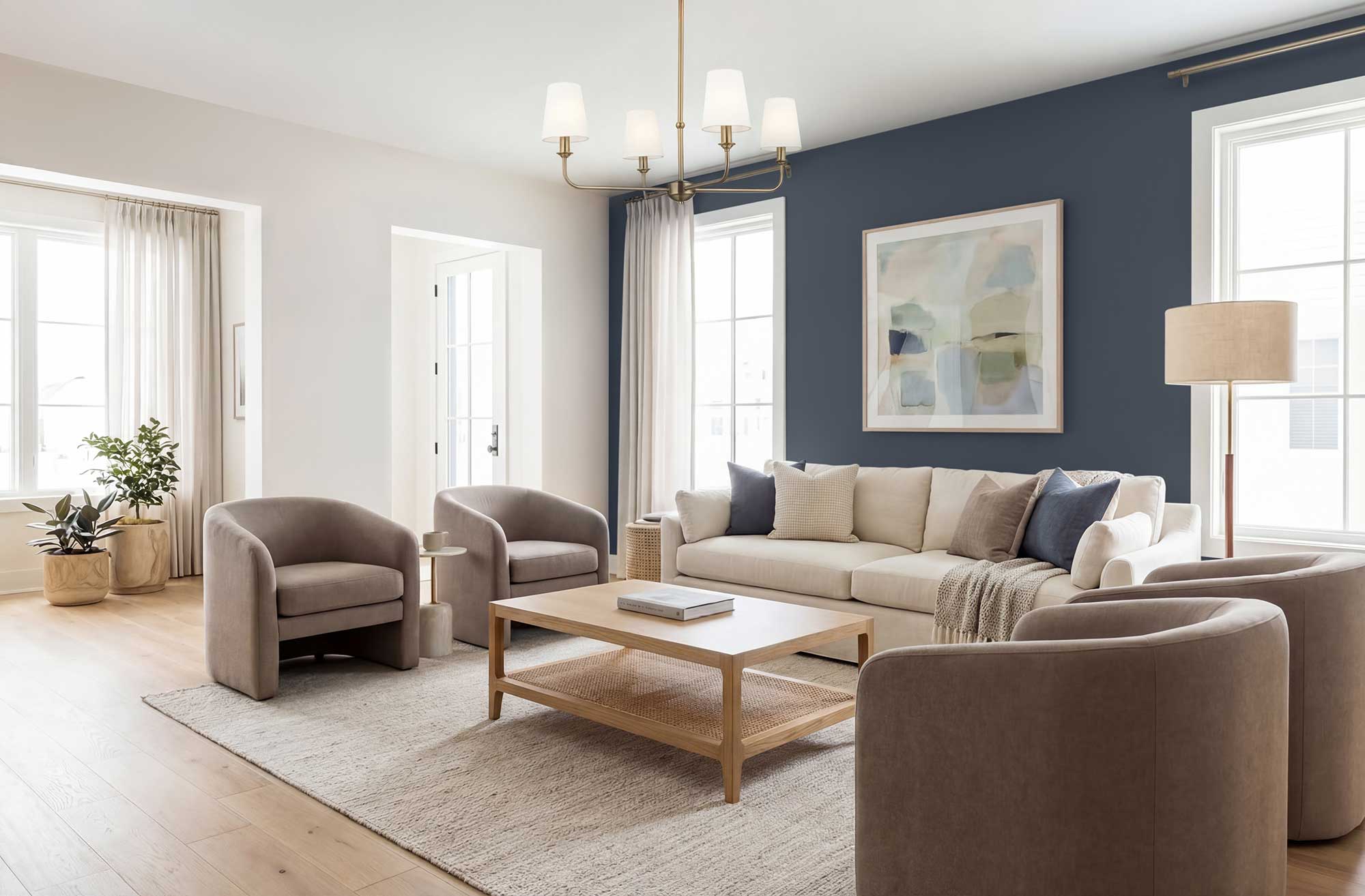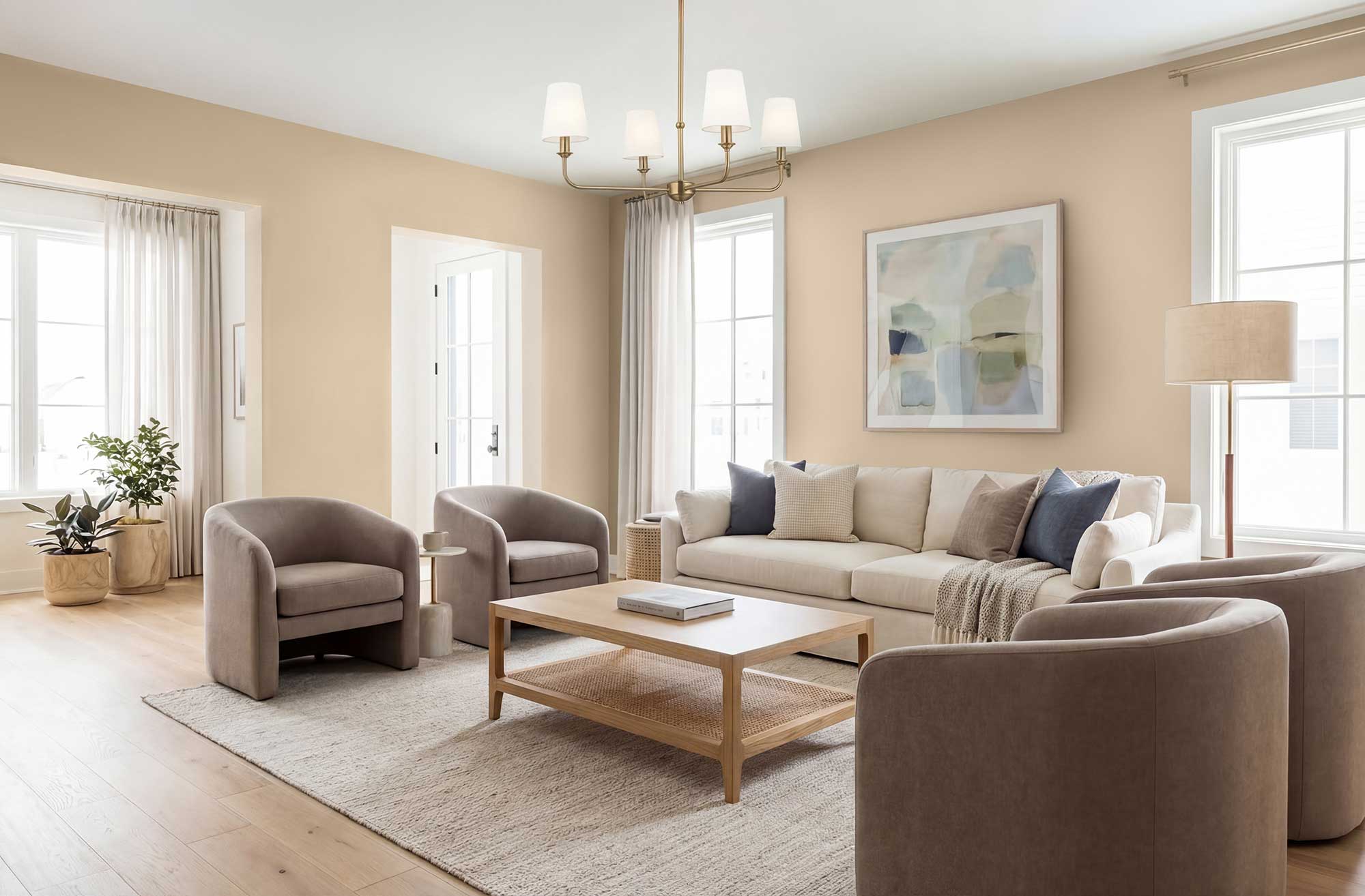 The space is lit, textured, and art-directed to match the desired tone.